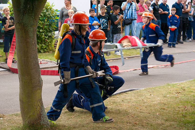 Es wurden verschiede Vorführungen geboten. Die Feuerwehrleute zeigten unter anderem eine Fettexplosion, die Explosion von einer erhitzten Spraydose und das Löschen von brennender Kleidung am Körper. Die Jugendfeuerwehr zeigte bei Löschübungen ihr können. So musste aus einem vernebelten Auto ein Mensch gerettet und ein vermeintliches Feuer gelöscht werden. Alle Besucher hatten die Möglichkeit sich über die Verwendung von Rauchmeldern zu informieren und diese auch zu erwerben.