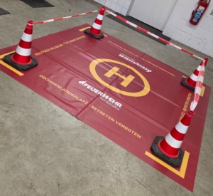 • Markierte Start- und Landeplane (2,5 × 2,5 Meter)