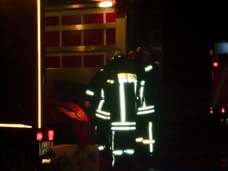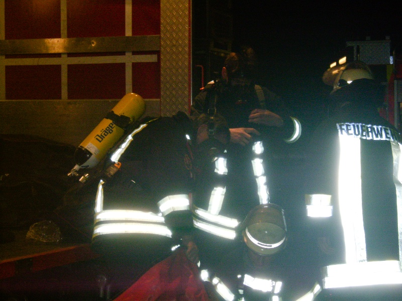 Nach wenigen Minuten erreichte das erste Einsatzfahrzeug die Einsatzstelle. Der Gruppenführer des TLF 16/25 aus Lockhausen machte sich mit der Einsatzlage vertraut. Unter Körperschutzform 1 ging der erste Angriffstrupp zur Menschenrettung in das Gebäude vor. Bei dieser Körperschutzform werden HUPF- Einsatzbekleidung sowie Atemschutzgeräte mit Maske und Flammschutzhaube getragen.