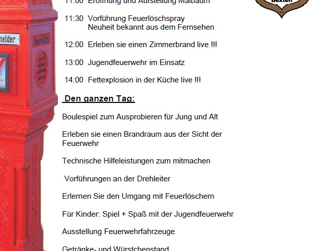 Am 01.05.2013 lädt die Löschgruppe Wülfer-Bexten zum Tag der Feuerwehr auf das Gelände der...