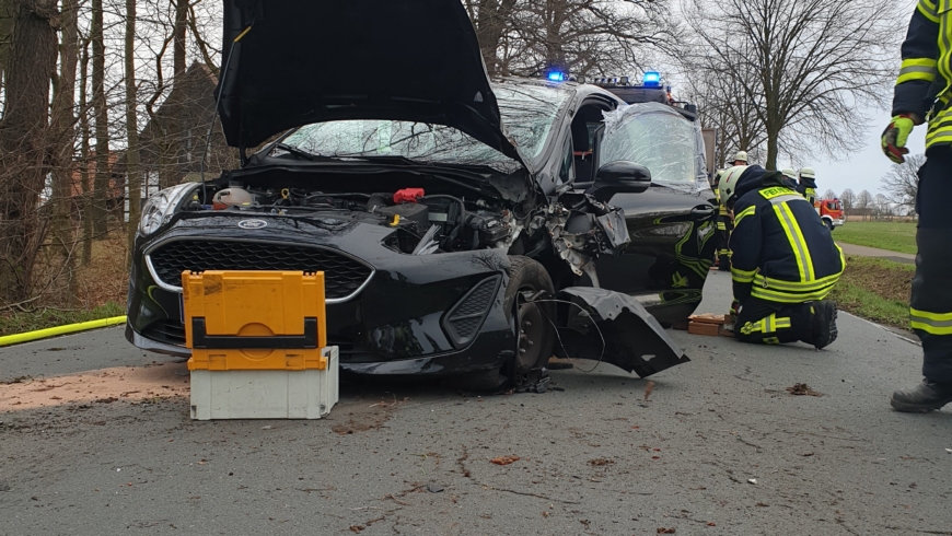Gemeldet wurde ein Verkehrsunfall mit einer eingeklemmten Person im Ortsteil Wüsten...