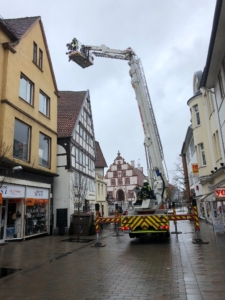 Parallel zu EB 087, drohten in der Innenstadt, im Bereich der Osterstraße, Dachziegel von einem Dach auf die Straße zu fallen. Die Löschgruppe Bad Salzuflen wurde zu dieser Einsatzstelle alarmiert. Mit Hilfe des dort besetzten Teleskopmast, konnten die losen Dachziegel von der Dachfläche beseitigt werden. Der Bereich wurde zusätzlich abgesperrt und der Eigentümer kümmert sich um einen Dachdecker.