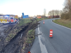 Am Mittwoch Abend kam eine LKW- Fahrerin von der Fahrbahn ab und kam auf dem Grünstreifen auf der Abfahrt OWL- Straße zum stehen. Dabei wurde ein Baum und mehrere Verkehrsschilder zerstört. Glücklicherweise kam der mit Schotter beladene Lastzug nach ca. 150m zum stehen. Dabei wurde die Fahrerin nur leicht verletzt. Trotzdem kam sie für weitergehende Untersuchungen in ein Herforder Krankenhaus. Die Bergungsmaßnahmen zogen sich bis in den späten Abend hinein.