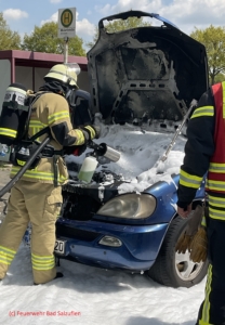 Die Besatzungen von HLF20 und HTLF4000 sind am Mittag zu einem PKW-Brand alarmiert worden. Besonderheit war, es handelte sich um ein Fahrzeug mit Flüssiggasantrieb. Bei Eintreffen brannte der Motorraum in voller Ausdehnung. Der Angriffstrupp schlug die Flammen schnell nieder. Bei der Kontrolle des Motorraums konnte keine Gasausströmung festgestellt werden. Das Sicherheitsventil hat seine Funktion erfüllt und die Gasversorgung ordnungsgemäß getrennt. Um eine Rückzündung zu verhindern und um Hohlräume besser erreichen zu können, wurde der Motorraum mit Schaum geflutet. Im Anschluss konnte das Fahrzeug abgeschleppt werden. An dem Fahrzeug entstand ein Totalschaden.