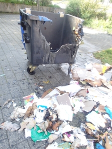 An einer Grundschule im Ortsteil Schötmar/ Werl- Aspe brannte eine große Papiertonne. Aufmerksame Zeugen riefen umgehend über den Notruf die Feuerwehr. Vor Ort wurde die Tonne umgehend von den Einsatzkräften von der Gebäudewand weggezogen. Anschließend wurde der Brand mit dem Schnellangriff abgelöscht.