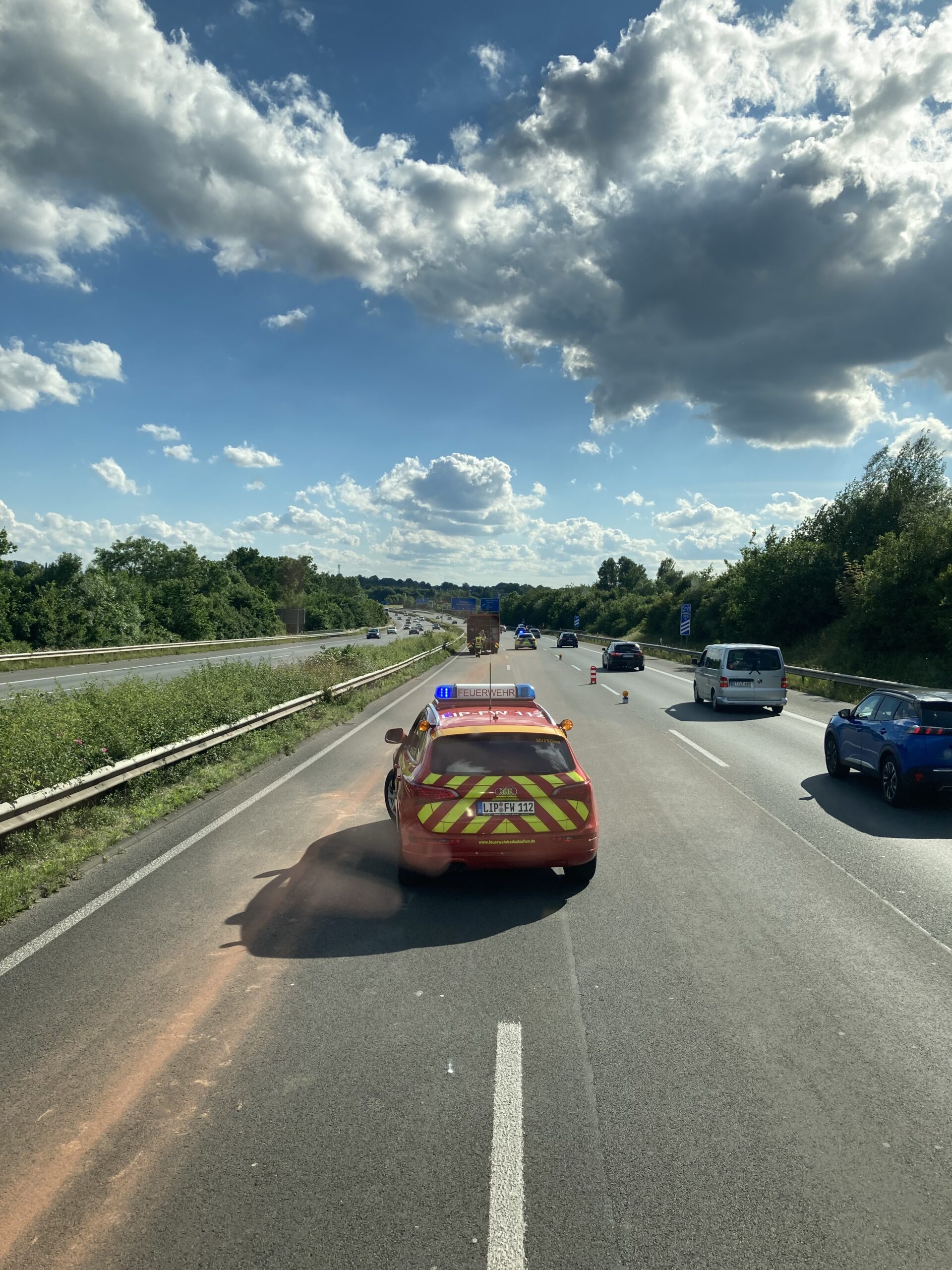 Die Polizei von EB 370, schickte die Einsatzkräfte direkt zu einer weiteren Ölspur auf der BAB 2. Eine weitere Streifenwagenbesatzung hatte die Autobahn schon kurz vor der Abfahrt Herford Bad Salzuflen, in Fahrtrichtung Dortmund voll gesperrt. Ein weiterer Autofahrer ist über einen unbekannten Gegenstand gefahren und hatte sich dir Ölwanne beschädigt. Hierdurch zog er eine ca. 200m Lange Ölspur auf dem linken Fahrstreifen. Die Feuerwehr streute die Spur mit Bindemittel ab und fegte das gesättigte Bindemittel wieder zusammen und führte es der fachgerechten Entsorgung zu. Nach ca. 30min konnte die Feuerwehr den Einsatz beenden und der bis dahin 10km lange Stau in Fahrtrichtung Dortmund konnte sich langsam wieder auflösen.