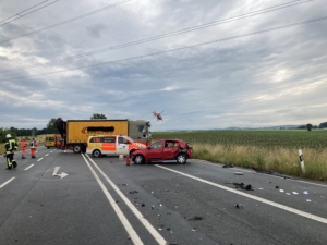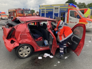 Bei einem schweren Verkehrsunfall auf der Ostwestfalenstraße, ist heute Morgen eine Person schwerstverletzt worden. Ein PKW stieß auf einer Kreuzung mit einem Traktor zusammen. Dabei wurde das Auto auf die Gegenspur geschleudert und nochmals von einem LKW seitlich gerammt. Dabei ist der Fahrzeugführer aus dem PKW geschleudert worden. Ersthelfer kümmerten sich vorbildlich um die Person und sperrten die Fahrbahn ab. Die Feuerwehr kümmerte sich um den Patienten, bis zum Eintreffen des Rettungsdienstes. Aufgrund der Schwere der Verletzungen, wurde der Rettungshubschrauber „Christoph 13“ zur Einsatzstelle alarmiert. Dieser brachte den Fahrer in eine Klinik nach Bielefeld. Das PSU- Team der Feuerwehr kümmerte sich um die Ersthelfer und unverletzten Unfallbeteiligten.