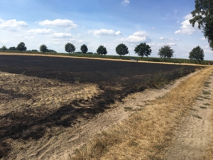 Es brannte ein Stoppelfeld und ein angrenzender Feldweg auf einer Fläche von ca. 3000 Quadratmetern. Das Feuer drohte auf ein Waldgebiet überzugreifen. Der LZ Holzhausen und die Besatzung des TLF4000 konnten das Feuer rechtzeitig eindämmen, so dass der Brand nicht auf das Waldgebiet übergegriffen hat.