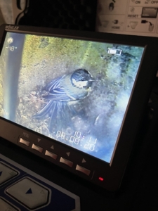 Die Feuerwehr wurde für eine Tierrettung an die Erich Kästner Schule alarmiert. Aufmerksame Jugendliche bemerkten beim chillen ein Piepen und Kratzgeräusche, die aus dem dortigen Stützpfeiler des Wetterschutzdaches kamen. Als die Feuerwehr eintraf, konnten im ersten Moment keine Geräusche wahrgenommen werden. Nach einiger Zeit hörten auch die Einsatzkräfte Bewegungen in der Stütze. Diese war ca. 2,5m hoch und von oben unter dem Dach geöffnet. Um zu schauen, um welches Tier es sich dort handelt, schob die Feuerwehr eine Endoskopkamera in den hohlen Pfeiler. Auf dem Boden wurde ein sichtlich geschwächter zusammengerollter Vogel entdeckt. Nachdem dieser mit dem Kamerakopf angestupst wurde, entpuppte sich der Vogel als eine männliche ausgewachsene Meise. Die Versuche aus dem Rohr zu fliegen, scheiterten aufgrund des Durchmessers. Die Feuerwehr baute dem Vogel einen sogenannten manuellen „Einvogelaufzug“, indem ein Baumwolllappen an einer Arbeitsleine befestigt wurde und dieser langsam auf dem Boden bis zum Vogel abgelassen wurde. Nachdem durch die Kamera gesehen wurde wie sich die Meise an dem Lappen festkrallte, ging die Fahrt in langsamen Tempo nach oben. Als der „Aufzug“ seine Endposition erreicht hatte, entließ sich der Wildvogel schnell selbst aus dem Einsatz und flog mit sehr schnellen Geschwindigkeit in die schützenden Büsche. Dort wurde erstmal ein ausgiebiges Pflegeprogramm in der Sonne betrieben. Die Feuerwehr konnte ihre Maßnahmen zurücknehmen und auch wieder die Wache anfahren.