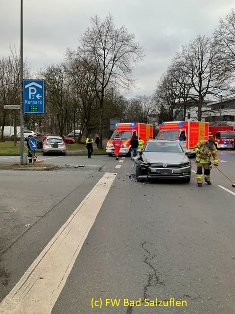 st orderte die Feuerwehr nach, da aus einem verunfallten PKW Betriebsstoffe ausliefen. Bei der Erkundung wurde festgestellt, dass es sich lediglich um eine minimale Menge Scheibenwischwasser handelte. Hieraus entstand weder eine Verkehrs- noch eine Umweltgefahr. In Absprache mit der Polizei entfernte die Feuerwehr nur Glasscherben und Trümmerteile von der Fahrbahn. Beide Fahrzeuge wurden bei dem Unfall so stark beschädigt, dass sie nicht mehr fahrbereit waren und abgeschleppt werden mussten. Für die Dauer des Einsatzes entstanden erhebliche Verkehrsbehinderungen.