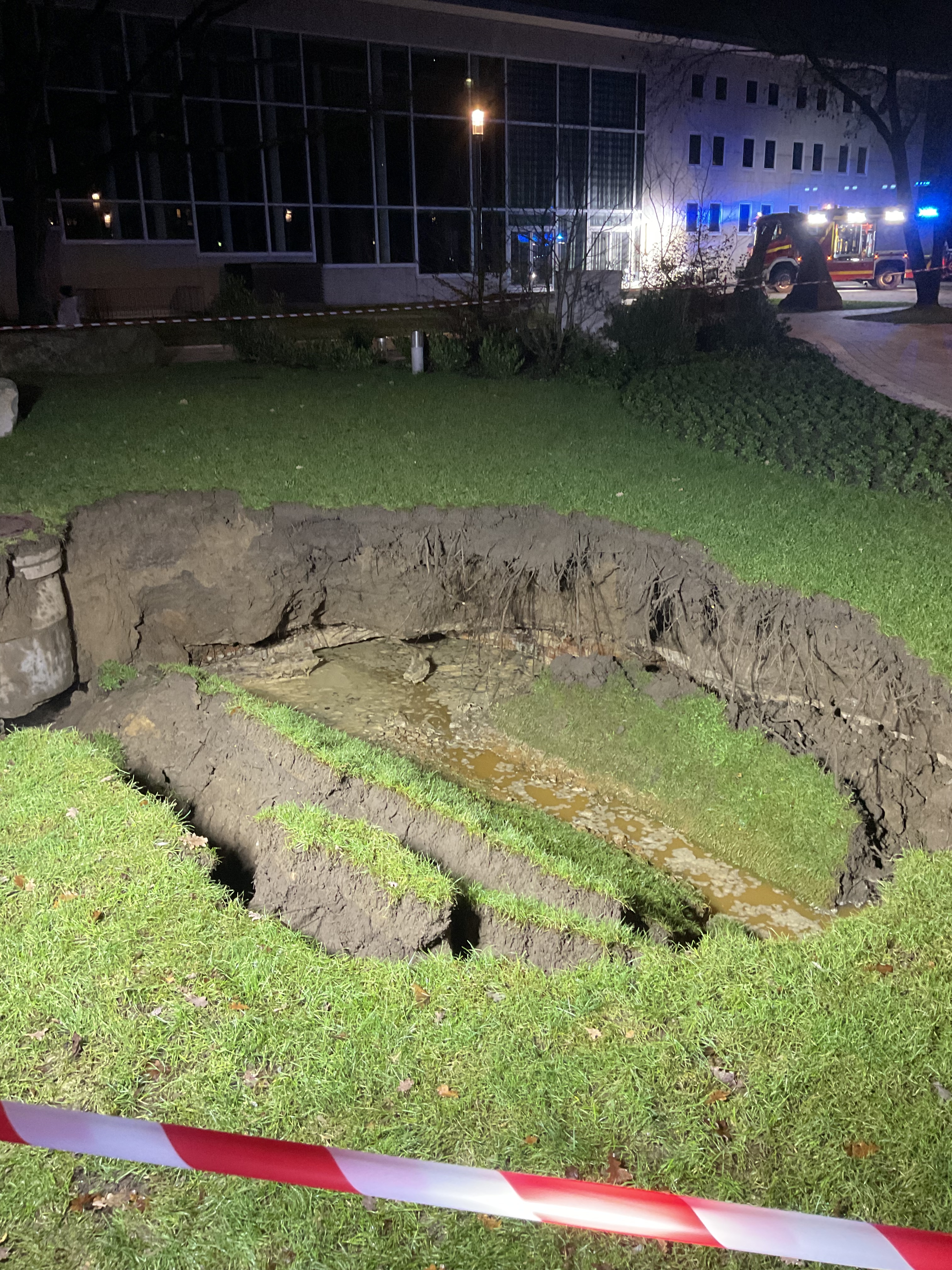 Am frühen Abend ist Wachbesatzung zu einem „Erdrutsch“ in die Wenkenstraße alarmiert worden. Im Bereich der Konzerthalle hat sich auf einer größeren Fläche die Erde aufgetan. Laut Meldung sollen schon Fundamente sichtbar sein und das Loch vergrößert sich weiter. Noch auf der Anfahrt wurde die Stadtwerke und die Bereitschaft des Tiefbauamtes informiert. Vor Ort konnte dann „etwas“ Entwarnung gegeben werden. Nach einem Rohrbruch ist eine Grünfläche unterspült worden und eingebrochen. Gebäude und Personen waren glücklicherweise nicht betroffen. Die angrenzenden Fußwege wurde provisorisch abgesperrt. Ein Tiefbauunternehmen wird eine fachgerechte Absperrung installieren. Die Einsatzstelle wurde an die Stadtwerke und das Tiefbauamt übergeben.