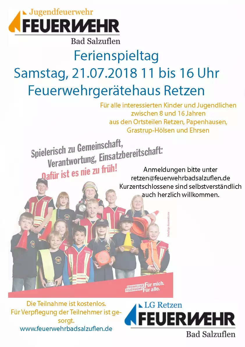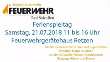 Am Samstag den 21.07 veranstaltet die Löschgruppe Retzen erneut einen Ferienspieltag für die Kleinsten im Dorf.