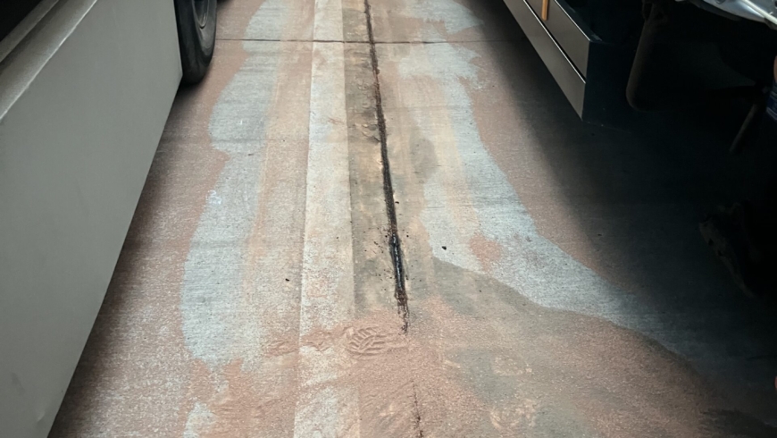Auf dem Seitenstreifen hat ein PKW eine Ölspur verursacht. Der Bereich wurde mit Bindemittel...