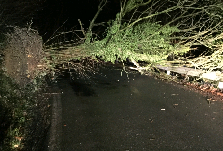 Auf der Heldmanstraße war ein etwa 40cm dicker Baum umgefallen und lag quer über der Fahrbahn...