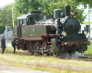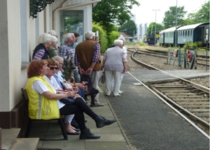 Wieder ging es ca. 1,5 Km zu Fuß zur Bahnhaltestation Südhemmern. Uns erwartete die Fahrt mit der historischen, preußischen Dampfeisenbahn zurück nach Minden-Oberstadt. Der Zug kam nicht ganz pünktlich, aber er kam. Was man von der Deutschen Bahn AG ja nicht immer behaupten kann. Schnaufend kam das Gefährt zum stehen und wir durften wählen zwischen I., II. oder III. Klasse. I. Klasse war gepolstert, II. und III. Klasse waren rustikal in Holz, aber alles super in Schuß gehalten wofür auch in diesem Fall ein Verein von Hobby-Eisenbahnern viel Zeit und Idealismus investiert. |