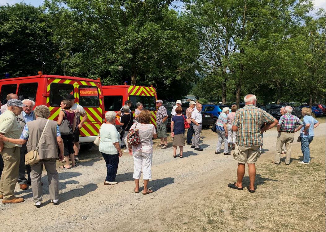 Am Sonntag, 22. Juli trafen wir uns mit Damen zu unserem diesjährigen Ausflug an der Wache Oerlinghauser Straße. Nach kurzer Begrüßung durch den Sprecher Klaus Bitter und einem Grußwort des Wehrführers Ralf Mensenkamp wurden die Fahrzeuge besetzt und pünktlich um 12.00 Uhr ging die Fahrt über die Ostwestfalenstraße los in Richtung Schieder, wo wir nach einer reibungslosen Fahrt um 13.00 Uhr eintrafen. Am Stausee-Zentrum hieß es erst einmal aussteigen und tief Luft holen. Wir hatten eine Außentemperatur von über 33° Celsius, was nicht nur einigen älteren Kameraden zu Schaffen machte.
