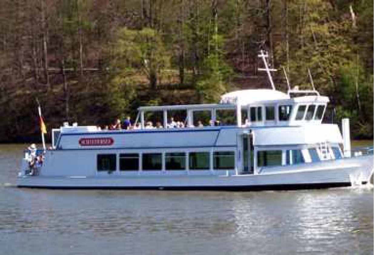 Langsam gingen wir vom Parkplatz zum Anleger runter, wo die „Schiedersee“ schon ankerte. Pünktlich um 13.30 Uhr durften wir an Bord gehen und unsere Plätze belegen. Die Fahrt ging einmal rund um den Schieder-Stausee bis zur Sperrmauer, dauerte ca. 90 Minuten und war sehr entspannend. Wer wollte, konnte sich ein erfrischendes kühlesGetränk oder eine Tasse Kaffee bestellen. Nach dem Anlegemanöver der „Schiedersee“ teilten wir uns auf. Wer wollte, konnte die Strecke bis zum Cafe „Seeterrassen“ auf der Nordseite zu Fuß zurücklegen, was ein kleiner Trupp auch in Angriff nahm.