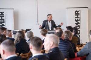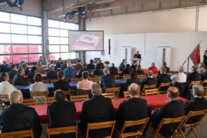 Des Öfteren fiel an diesem Nachmittag der Begriff „Mammutprojekt“. Auch wenn dieses Wort bei großen Bautätigkeiten fast inflationär benutzt wird, ist es bei der Bad Salzufler Feuerwache mehr als zutreffend. Seit dem ersten Spatenstich in 2020 hat sich die Welt bis heute nicht nur geopolitisch weitergedreht. Die Corona-Pandemie und damit auch einhergehend Firmeninsolvenzen spielten bei dem 20 Millionen Euro teuren Bau eine nicht ganz unerhebliche Rolle. Wenig später folgte noch der Angriffskrieg auf die Ukraine, der weltweit die Preise für Rohstoffe in die Höhe schießen ließ. Mitten in diesem Spannungsfeld befand sich auch Projektleiterin Heidrun Brokamp von der Stadt, die mit viel Einsatz die neue Feuerwache von der ersten Planung, bis zur Schlüsselübergabe begleitete. „Sie haben wirklich etwas tolles geleistet“, lobte Bürgermeister Dirk Tolkemitt am Freitag vor den rund 180 geladenen Gästen. Das Gebäude sei ein wichtiger Meilenstein in der Zukunftssicherung der Stadt und zähle mit der aktuellen Ausstattung zu einer der modernsten Wachen im Land. Feuerwehr-Chef Ralf Mensenkamp berichtete über die ersten Planungen im Jahr 2009. Damals habe man bereits Ideen gesammelt, wie eine neue Wache aussehen könnte. Es folgen Gespräche mit Rat, Verwaltung und politischen Fraktionen. Mit dem finalen Resultat sind Mensenkamp und sein Team sehr zufrieden: „Das Ding ist echt toll geworden“, konstatiere er. Zwar seien an der einen oder anderen Stelle noch Mängel, die sollen aber in Abstimmung mit dem Eigenbetrieb Gebäudewirtschaft der Stadt zeitnah umgesetzt werden.