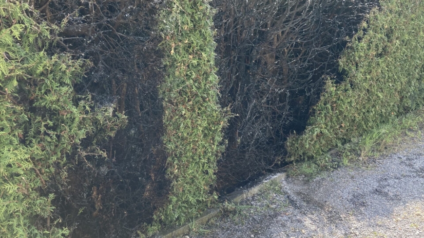 Durch abflämmen von Unkraut, ist durch die Hitze ein Stück der Hecke im Ortsteil Grastrup-Hölsen...