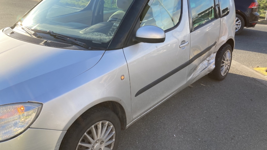 In einem Kreisverkehr hatte ein PKW- Fahrer einen Roller übersehen und im Heckbereich touchiert...
