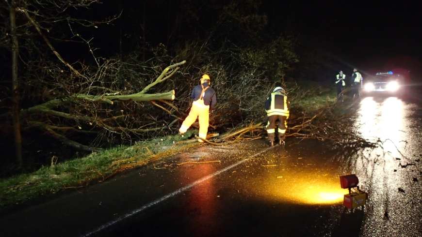Es wurde ein Baum zersägt und von der Straße geräumt.