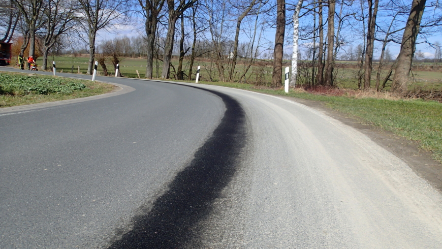 Ein unbekannter Verursacher hat mit seinem Fahrzeug in mehreren Linkskurven Motoröl verloren...