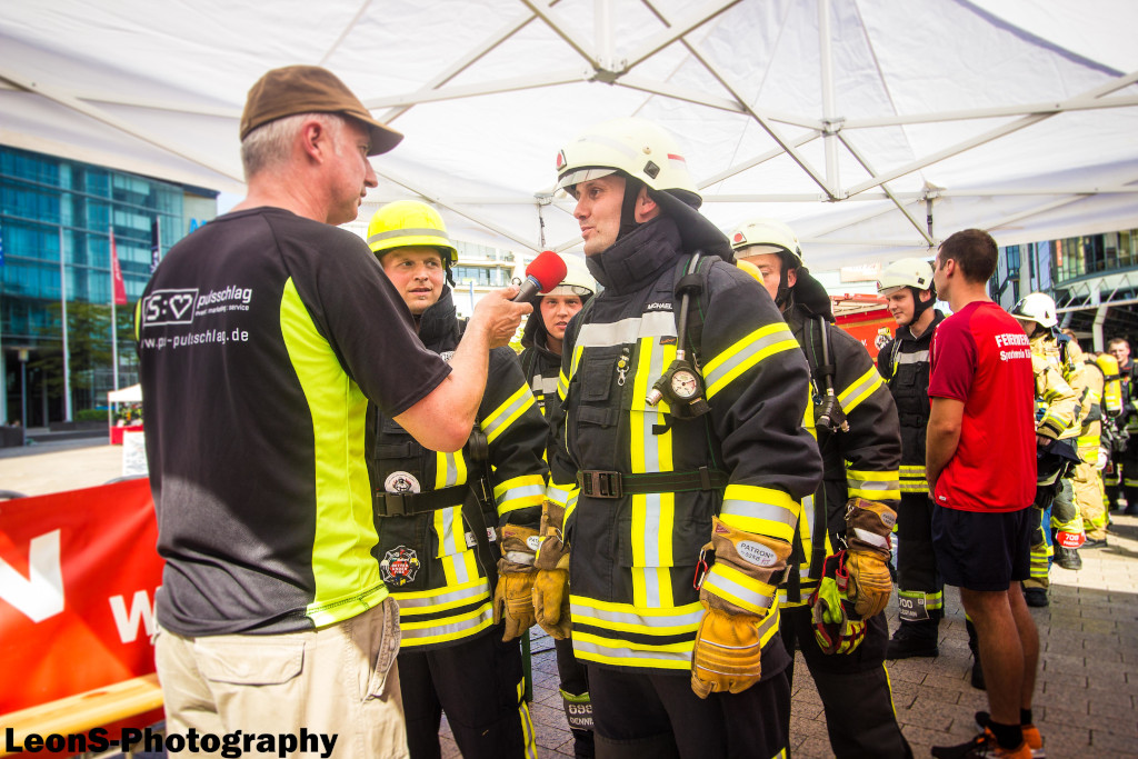 Zugegeben, bei sommerlich warmen Temperaturen den gläsernen Kubus am Rande des Kölner Mediaparks in voller Feuerwehrmontur hinaufzusprinten, erfordert schon einen Hang zur Selbstqual. Und doch haben sich Dennis Gruhn, André Winkler, Benjamin Theißmann, Michael Firzlaff, Christian Baier, Florian Thyne, Lars Brühl und Christian Scholz genau auf diesen Tag vorbereitet. Am vergangenen Sonntag war es soweit. Scholz, der Idee hatte, als Bad Salzufler Feuerwehr bei dem Wettbewerb anzutreten, hat sich für die nötige Fitness sogar einen kleinen Parcours im heimischen Garten aufgebaut. „Für uns geht es darum fit zu bleiben und das unter Beweis zu stellen“, sagt er. Und auch wenn die Gruppe gemeinsam in Köln angetreten ist, trainiert wurde meist jeder für sich.