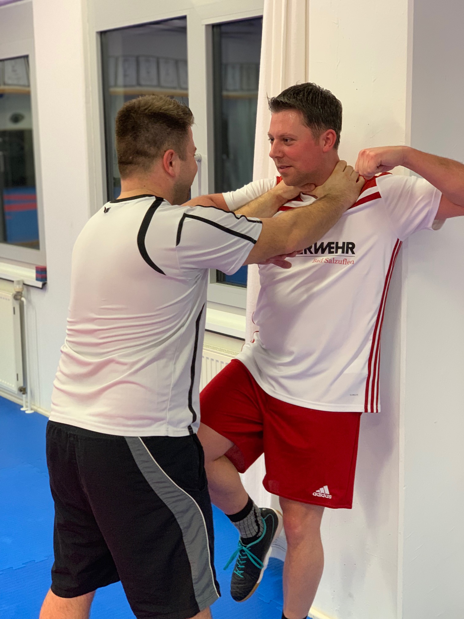 Am Montagabend endete ein Selbstverteidigungskurs, an dem Mitarbeiterinnen und Mitarbeiter der Stadtverwaltung Bad Salzuflen, der Feuerwehr und städt. Hausmeister teilgenommen haben. An zehn Montagabenden wurden die Kolleginnen und Kollegen von den Trainern Bernd Kopp, Björn Flaig und Cornelia Krüger in den Grundlagen der Selbstverteidigung geschult. Über rechtliche Grundlagen und Deeskalation ging es bereits am ersten Abend um die praktische Selbstverteidigung. Verschiedene Abwehr- und Angriffstechniken wurden gelehrt und wiederholt.