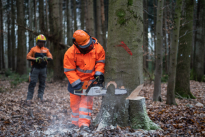 Der Waldabschnitt ist extra durch einen Förster für die Feuerwehr freigegeben worden. Dieser hat auch vorher die Bäume gesichtet und entsprechende Bäume markiert.