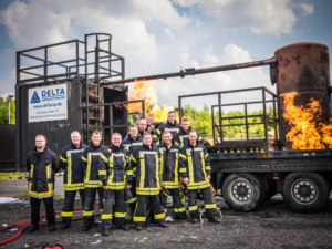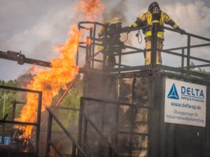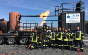 In Zusammenarbeit mit der Delta Safety & Protection GmbH wurden auf dem Gelände der Verdichterstation Lippe realistische Übungen zur Bekämpfung von Gas- und Flüssigkeitsbränden durchgeführt. Mithilfe eines Spezialtrucks, auf dessen Ladefläche sich verschiedene Brände simulieren ließen, konnten unterschiedliche Löschszenarien geübt werden. Dabei kam es für die Brandbekämpfer auf bedingungslose Teamarbeit an. Normalerweise werden Gasbrände von der Feuerwehr nicht bekämpft, da während eines Gasbrandes in der Regel eine ”kontrollierte” Situation herrscht und lediglich die Umgebung geschützt werden muss. Werden die Flammen gelöscht, ohne dass die Gaszufuhr gestoppt wird, kann das Gas unkontrolliert ausströmen und eine größere Gefahr als den Brand erzeugen.