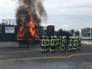 Am vergangenen Wochenende (07.07. und  08.07.2017)  konnten insgesamt 36 Teilnehmerinnen und Teilnehmer aus allen Löschgruppen und -zügen der Freiwilligen Feuerwehr inkl. der hauptamtlichen Kräfte an Übungen zur Industriebrandbekämpfung teilnehmen. Ermöglicht wurden diese Übungen von der GASCADE Gastransport GmbH, welche die Verdichterstation Lippe betreibt.